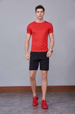 超彈力純色上衣 夏季男女裝T恤文化衫紅色 【圓領】