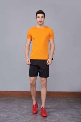 超彈力純色上衣 夏季男女裝T恤文化衫 橘色【圓領】