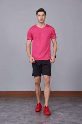 速干T恤 輕薄透氣男女情侶款圓領短袖速干T恤 玫紅色