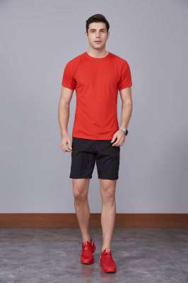 修身運動短袖 舒適透氣跑步訓(xùn)練速干T恤-大紅色